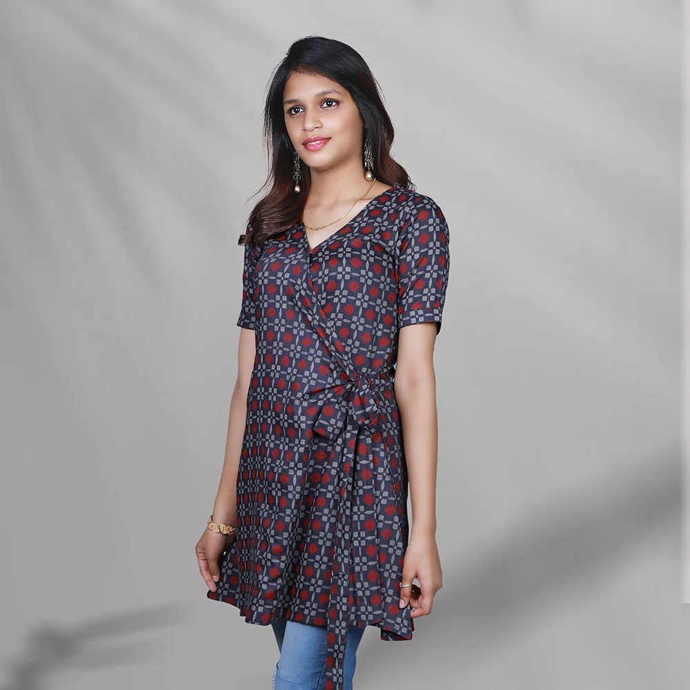 Ash Printed Short Kurti – Subtle Elegance for Everyday Wear